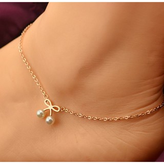 Lắc chân hình chiếc nơ titan màu vàng hồng TA568