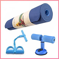Combo 3 sản phẩm hỗ trợ tập yoga : 1 thảm 2 lớp 6mm + 1dụng cụ hỗ trợ tập bụng hình chữ T + 1 dây kéo cao su