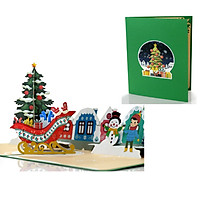 X26 - THIỆP NOEL 3D XE TRƯỢT – CÂY THÔNG – LÀNG TUYẾT DỄ THƯƠNG ️