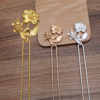 1 cán trâm đúc họa tết cá chép hoa sen 155*38mm nguyên liệu làm trâm làm trang sức cổ trang