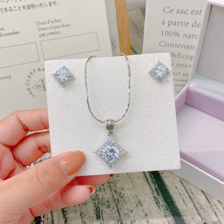 Set 3 Món Dây Chuyền Và Bông Tai Hình Vuông Bạch Kim Nhỏ Nhắn Dễ Thương - Trang Sức Nữ Đẹp Giá Rẻ - Queen Jewelry