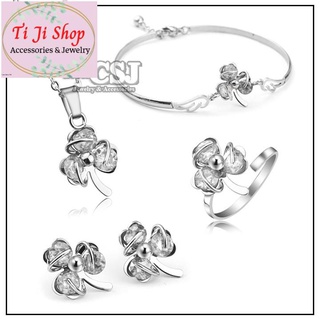 Combo Dây Chuyền Hoa Tai Bạc Ta Cỏ 4 Lá Màu Xanh May Mắn BẠC HIỂU MINH BCB006