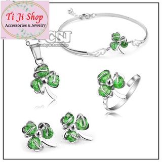 Combo Dây chuyền,bông tai và lắc bạc Ý 925 Huệ Ngân - Cỏ bốn lá may mắn PP1598-RYE141019-RYB140087