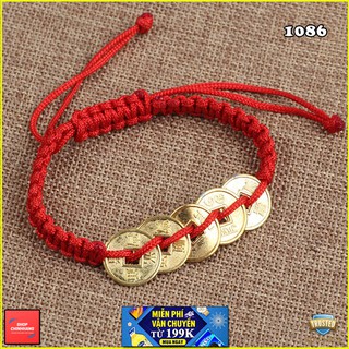 VÒNG TAY THỜI TRANG CHỈ ĐỎ MIX 5 XU KIM TIỀN SH1086