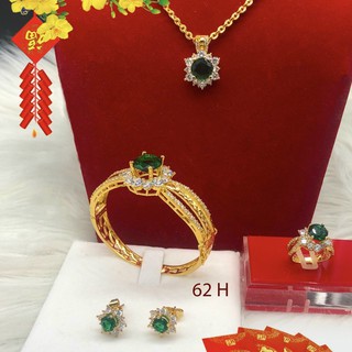 Bộ Trang Sức 5 Món Hoa Tròn Đá Xanh Lá - Đủ Size, Chuẩn Màu Vàng, Hàng Y Hình