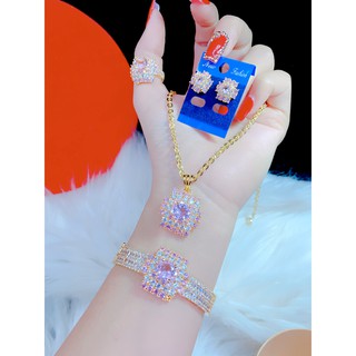 Bộ trang sức 4 món dây chuyền, vòng tay, bông tay và nhẫn, phụ kiện đi tiệc phong cách Âu Mỹ