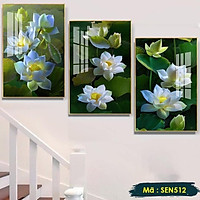 Tranh treo tường hoa sen 7 trang trí decor phòng khách phòng thờ kèm đinh BINDECOR