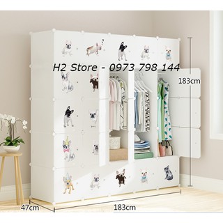 [ CÓ VIDEO ] TỦ GHÉP ĐA NĂNG THÔNG MINH 14 Ô & 2 KỆ GÓC CỬA CÚN DỄ THƯƠNG ĐỂ TREO GẤP QUẦN ÁO SÂU 47CM ( nhiều màu )