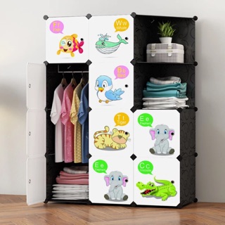 Tủ quần áo lắp ghép 6 ô Size sâu 47cm. Tặng kèm 1 treo đồ. Cửa bảng chữ cái kèm tiếng anh và hình động vật