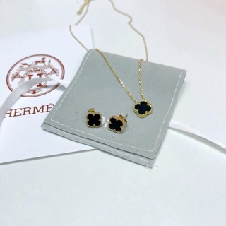 sét Dây chuyền + khuyên tai cỏ 4 lá ti tan,vòng cổ nữ cỏ 4 lá cao cấp,khuyên tai nữ cỏ 4 lá ti tan không han dỉ