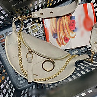 Túi da đeo hông kèm dây xích đeo chéo size 20cm (ảnh thật)