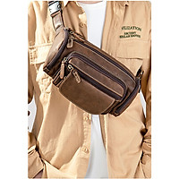 Túi bao tử nam da bò cao cấp BHM8355 Nhiều ngăn khóa kéo, bền bỉ, không bong tróc da