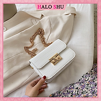Túi xách nữ, túi đeo chéo khoá gập phù hợp đi tiệc Halo Shu size 21 mã G001 đen, nâu, trắng, xanh ngọc
