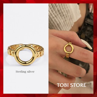 Nhẫn bạc nam nữ mạ vàng thiết kế mắt xích 2 độc đáo, cá tính N38| Bạc 925 cao cấp xi kim| TRANG SỨC BẠC HARMONY