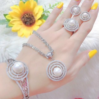 Bộ Trang Sức Ngọc Trai Nước Ngọt Bạc Hạt Nhỏ Đan Xoắn 5 Vòng Sang Trọng Dự Tiệc - Ngọc Trai Trường Thịnh