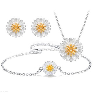 Bộ Trang Sức Mạ Bạc Hình Hoa Cúc Xinh Xắn ( BÔNG TAI + VÒNG TAY + VÒNG CỔ ) PK9