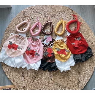 Đầm bé gái búp bê hai dây hoa đỏ và sóc nâu