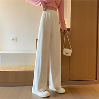 Quần Nữ Dài Ống Rộng DVGIT Chất Liệu Thun Tăm Lạnh Mềm Mịn Màu Be Sữa Thiết Kế Form Dáng Quần Ống Rộng Cạp Cao