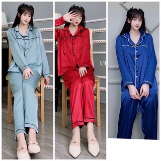 Bộ Lụa Pijama Mặc Bầu và Sau sinh- Chất Lụa gấm đẹp, áo khoá kéo cho bé ti quần chun chỉnh thoải mái