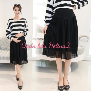 CHÂN VÁY BẦU XẾP LY HAI TẦNG KIỂU LẠ HAI MẦU ĐEN NÂU