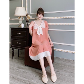 ( 40-100kg) VÁY BẦU mùa hè - Đầm bầu ngắn tay dáng tầng cổ đức