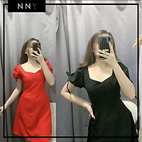 Váy cổ vuông tim tay nơ - NEMO DRESS - V031