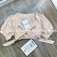 X2 Đầm maxi sọc caro xanh đi biển thắt nút sau form dài váy công sở cổ tròn tay ngắn dây eo