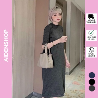 Váy len suông Aidenshop váy bầu thời trang thu đông chất len mịn từ 40-70kg tay lửng