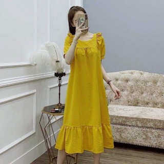 Váy Bầu Thiết Kế Mùa Hè shopdambau-HA1651 Váy Bầu Cổ Vuông Chất Cát Hàn Freesize (40-65kg)