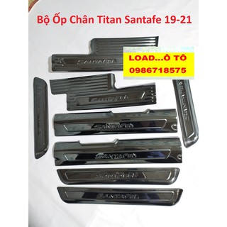 Ốp Bậc Cửa, Nẹp Bước Chân Xe Santafe 2022-2019 Chất Liệu Titan Cao Cấp, Có Sẵn Keo Dán 3M