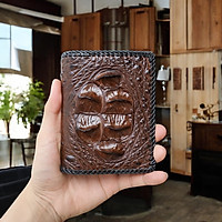 Ví ngang da cá sấu thật Fadoda màu nâu làm từ vân gù đầu da cá sấu - FCW03-02G