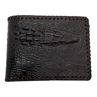 Ví Nam Ngang Da Bò Dập Vân Cá Sấu May Viền Tiến Công Màu Nâu Đất - TCN1042