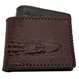 Ví Nam Ngang Da Bò Dập Vân Cá Sấu May Viền Tiến Công Màu Nâu Đỏ - TCN1041