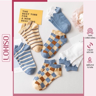 Tất cổ ngắn, vớ cổ ngắn nữ vải cotton thấm hút mồ hôi, co giãn 4 chiều họa tiết xinh xắn set 5 đôi TC18 - VHT SHOP