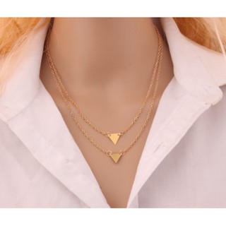 Vòng cổ Hàn Quốc hai lớp tam giác dây chuyền chuỗi ngắn phong cách nhẹ nhàng