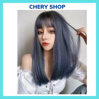 Tóc giả nguyên đầu ❤️FREESHIP❤️ nguyên đầu thẳng lỡ xanh khói hot hit tặng kèm lưới