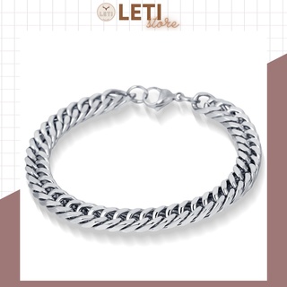 Vòng tay nam nữ LETI VT03 Cuban xích lớn màu bạc, lắc tay phong cách cá tính chất liệu bền bĩ thép titan không gỉ