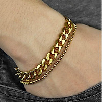 Vòng tay, Lắc tay Nam 2 Sợi Kiểu Mắt Xích Màu Vàng Bạc Chất Liệu Titan không Đen Bảo Hành 1 Năm SKU-LN137