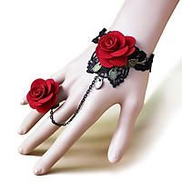Vòng tay kèm nhẫn nữ kết hợp ren màu đen kiểu dáng thời trang phong cách Hàn Quốc