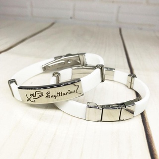 Mẫu#03 Vòng Tay Nam Nữ Chạm Khắc Chữ 12 Cung Hoàng Đạo(màu trắng) -VT03