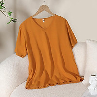 Áo ngắn tay mặc nhà vải Cotton lụa thoáng mát mềm mại, áo ngủ nữ mã VAA0439 - M10 Vàng đậm