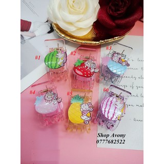 Kẹp tóc càng cua 3 răng - 5 răng trong đính icon trái cây ánh màu loang
