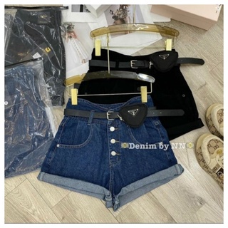 Quần sooc jean nữ lưng cao phối dây xích hông tôn dáng sexy kiểu dáng lạ mắt siêu hot