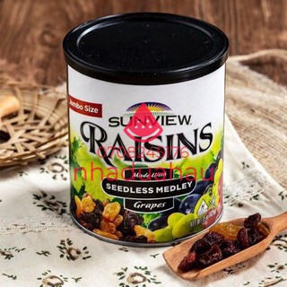 Một lon nho khô thập cẩm Sunview Mỹ chuẩn xịn date xa lon 425g