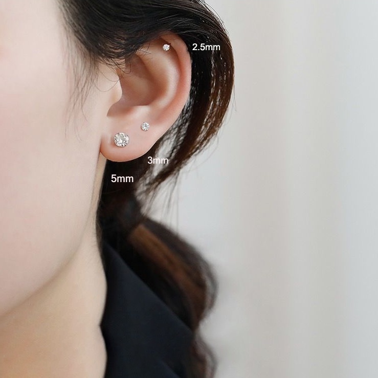 Giới thiệu Bông Tai Bạc Hanada Đá CZ 6A Chuẩn 120 Lát Cắt Siêu Lấp Lánh Không ố Không mờ Khuyên Nụ Trắng Đen Đơn Giản