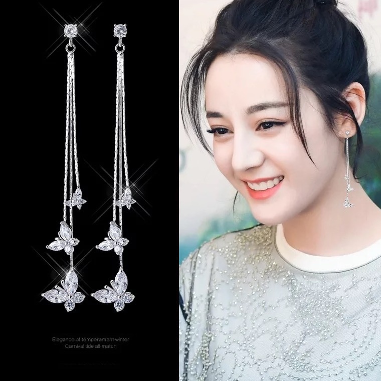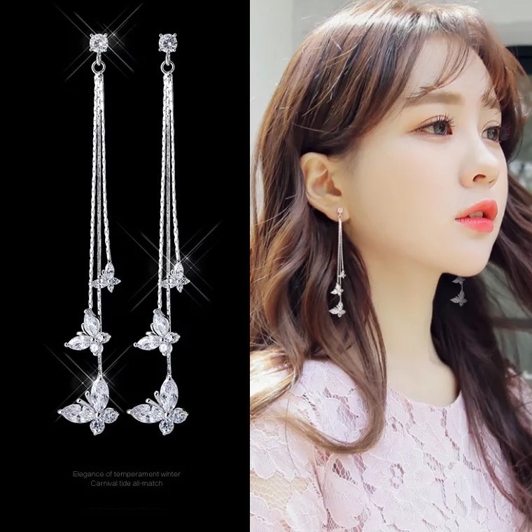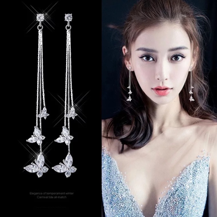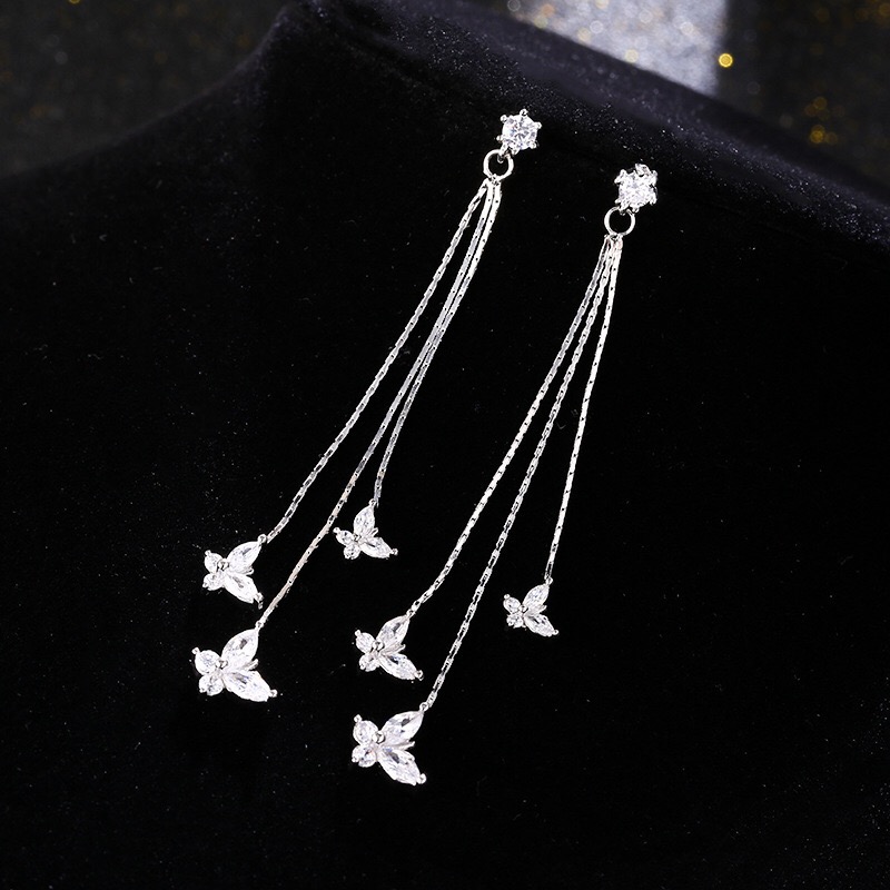 Bông tai bạc ý s925 với thiết kế kiểu giáng thời trang sang trọng, sử dụng viên kim cương lớn cùng với hình họa tiết 4 chiếc là lấp lánh