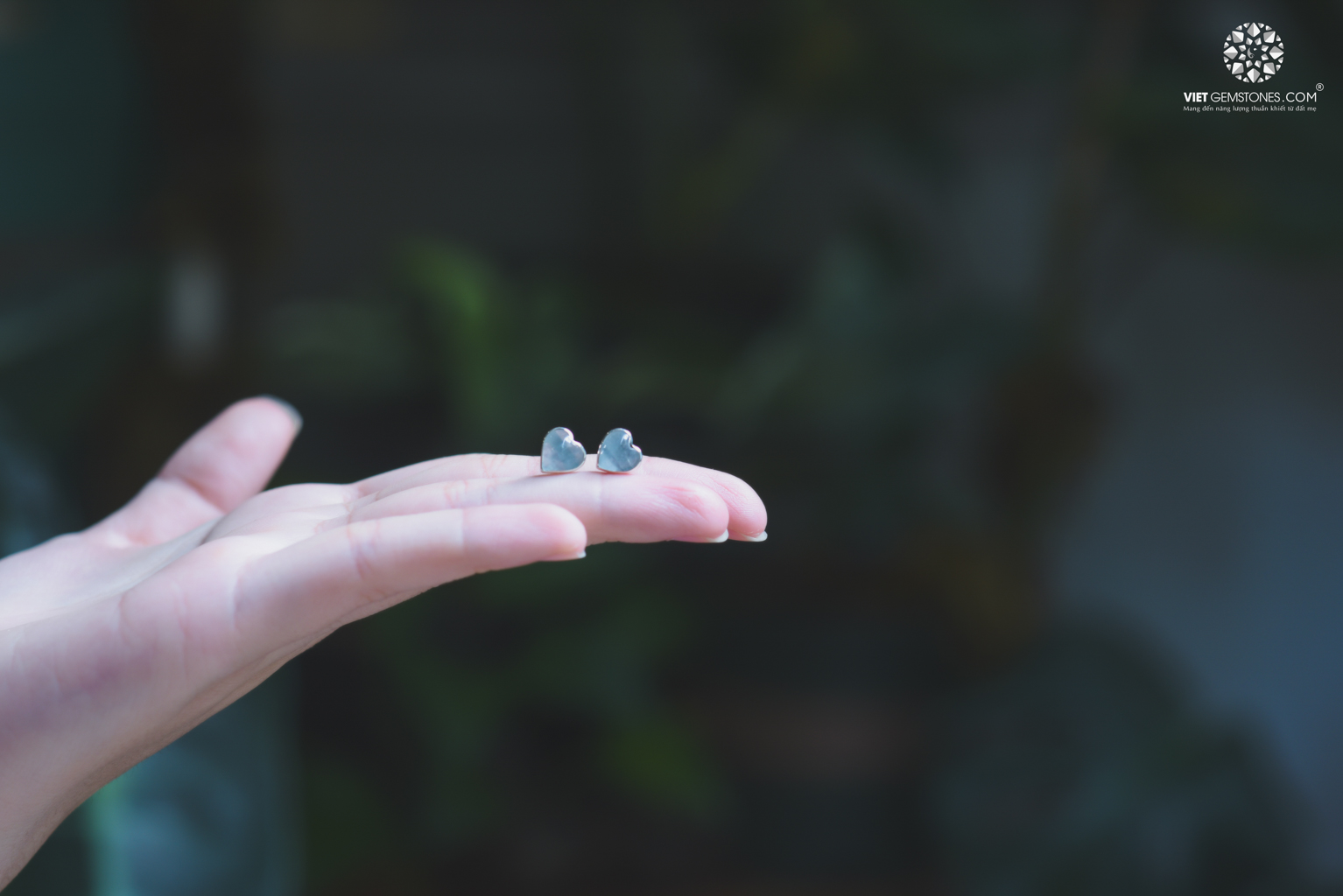 Bông tai bạc trái tim đá tự nhiên thanh lịch