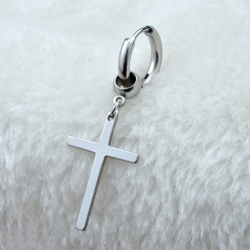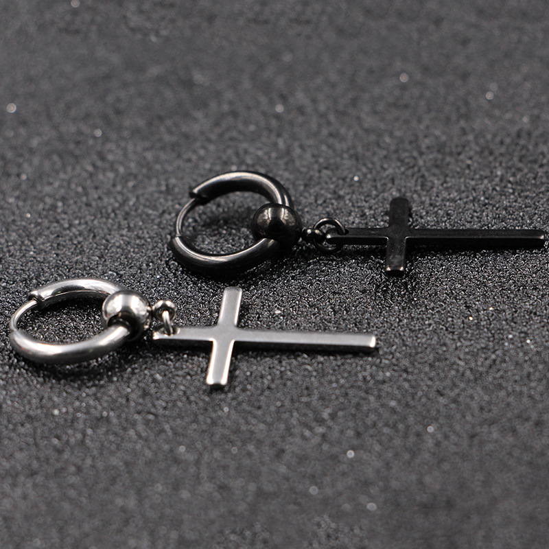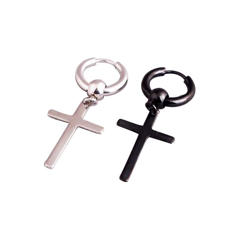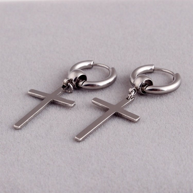 Khuyên tai titan khoen tròn chữ thập nam nữ cá tính