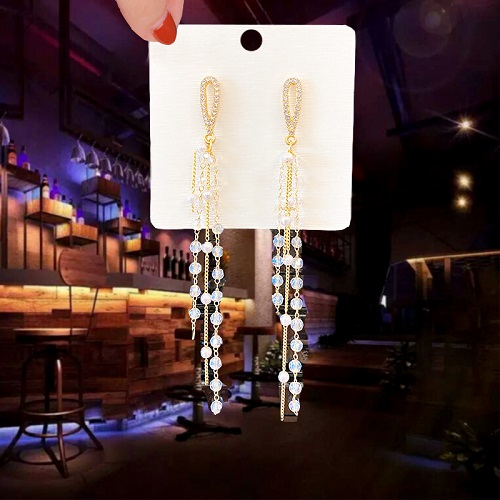 Bông tai chuỗi pha lê đá sang trọng dự tiệc