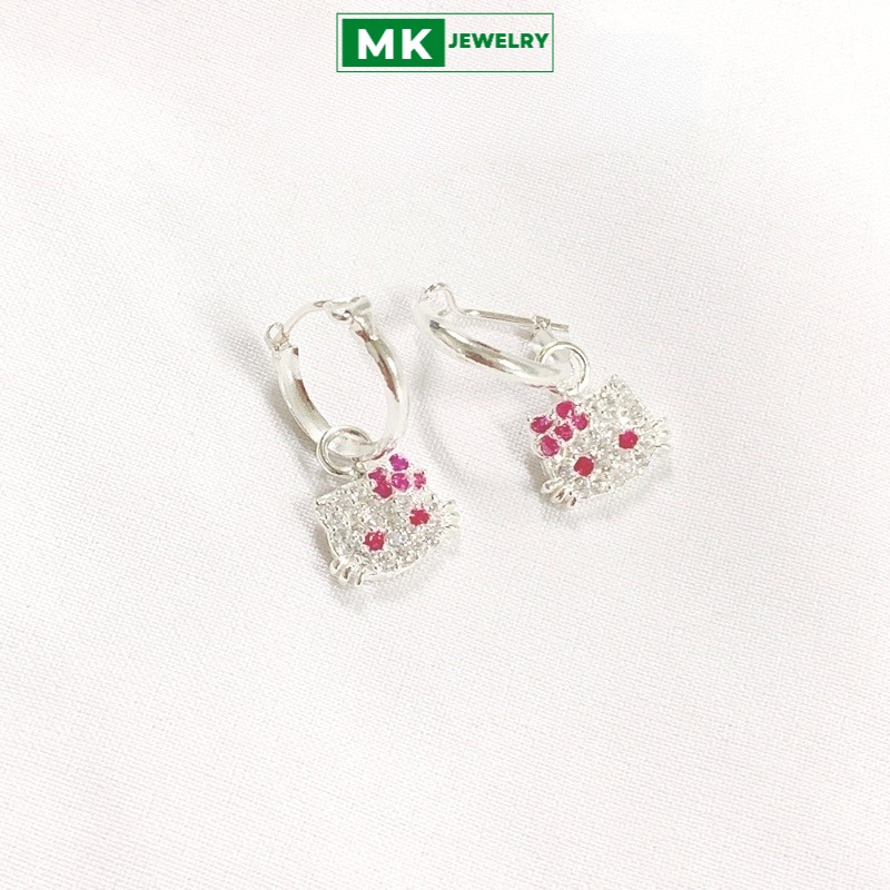 Bông tai, hoa tai hình mèo kitty dành cho bé, chất liệu bạc 925, rất dễ thương dành cho bé yêu, ảnh thật - MK Jewelry
